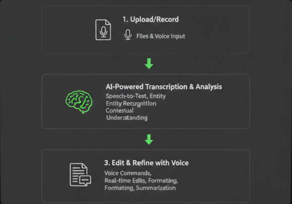 Explore demo videos and screenshots. Media placeholders are styled with brand colors and ready for your voice editing assets.